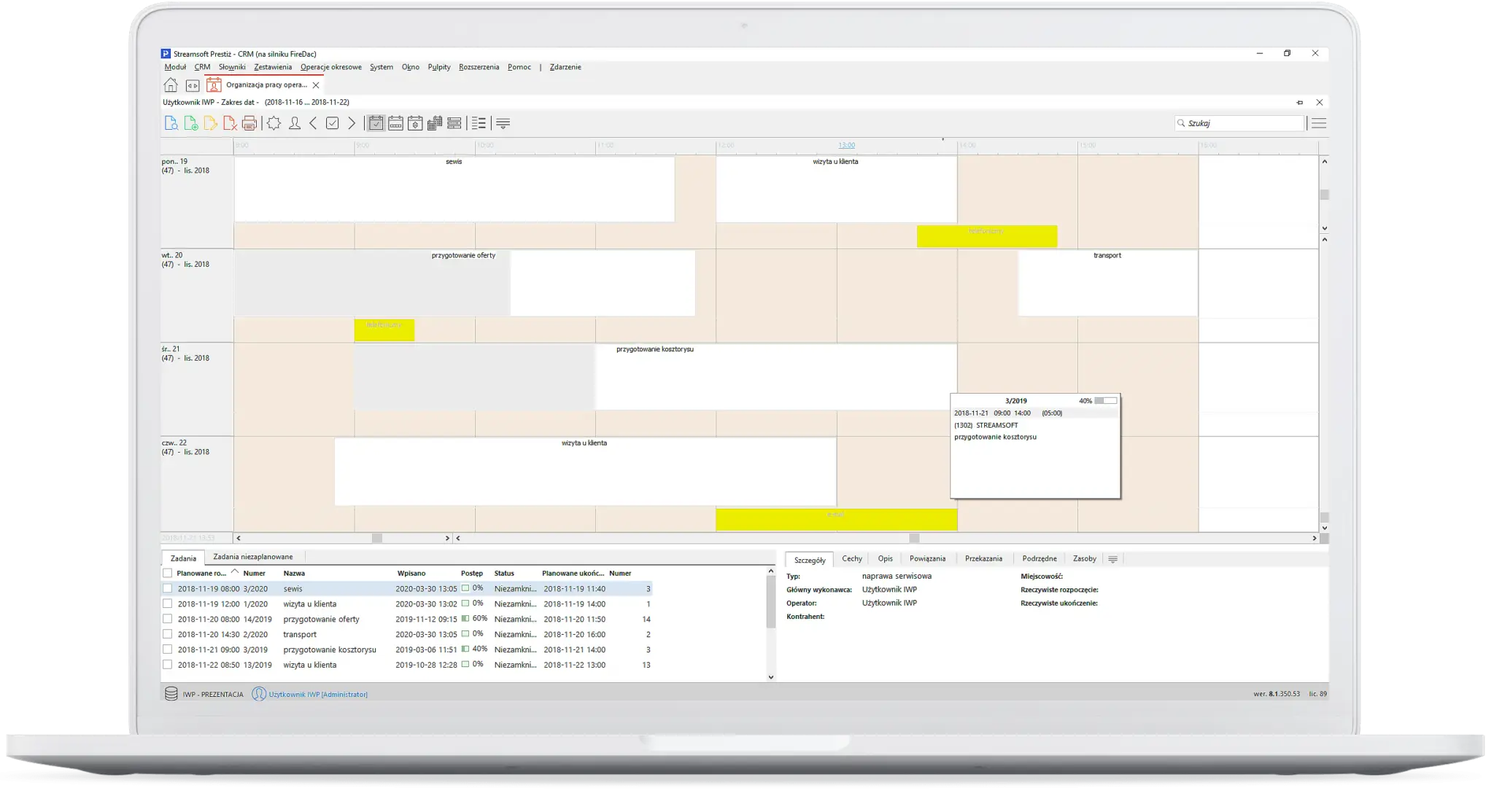 Laptop, rzutnik, salka czy samochód - z modułem CRM Streamsoft Prestiż intuicyjnie przydzielisz zasób potrzebny do danego zadania i zarezerwujesz go wraz z określeniem osoby odpowiedzialnej.